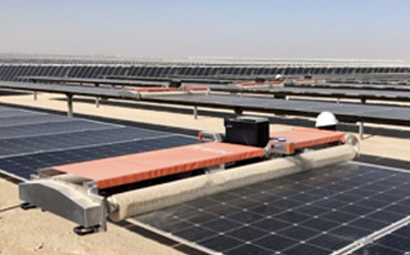 ブラシを使ったドライ清掃を採用しており、砂漠の貴重な資源である水を一切使わずに、太陽光パネルを清掃することで発電効率を維持することができます。