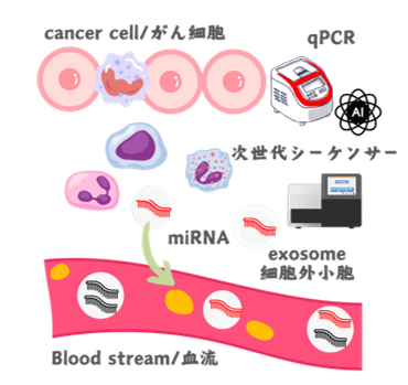 miRNAに着目し、AIと次世代シークエンサーを活用した血液検査によるがんの早期発見技術を開発中。